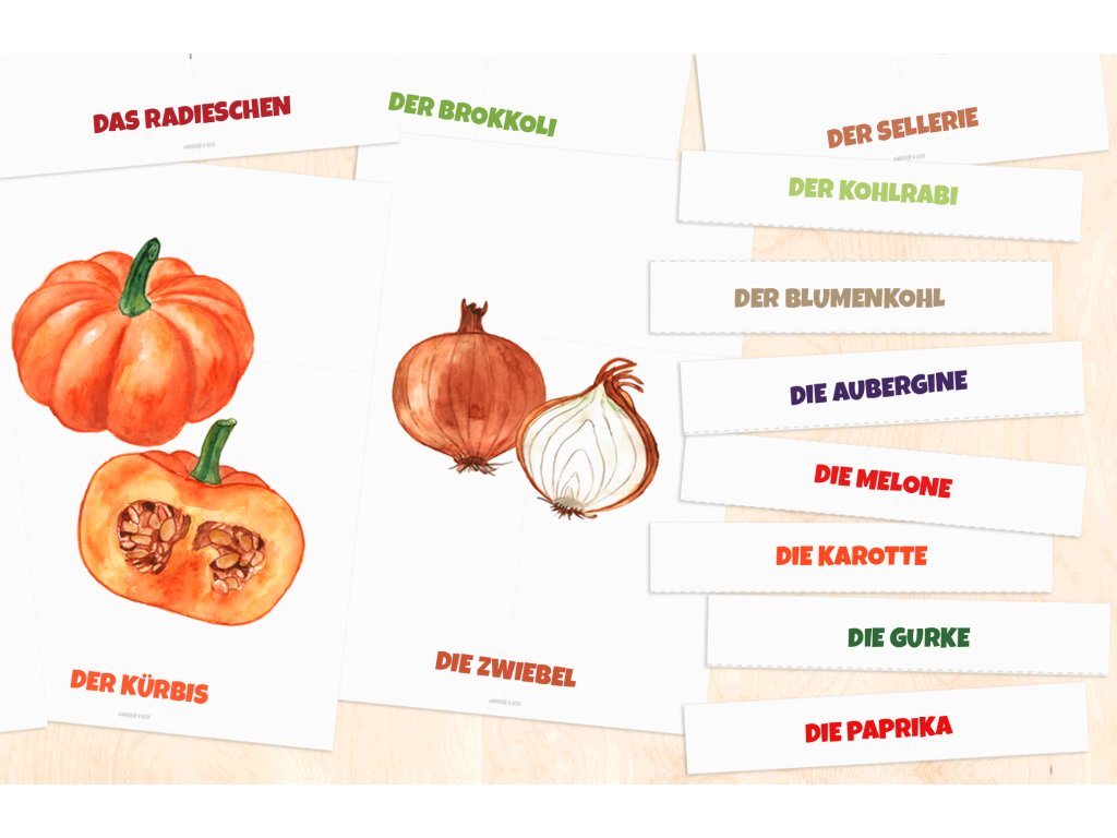 Erste Lese-Kompetenzen: Für ältere Kinder im Vorschulalter bietet das separate Material mit den Gemüsenamen eine hervorragende Möglichkeit, das Schriftbild der Wörter zu erkennen und erste Zuordnungsübungen zwischen Text und Bild zu meistern.