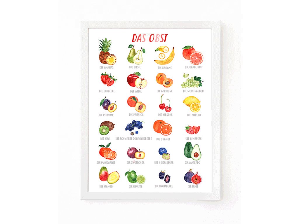 Sie erhalten eine hochwertige und dekorative Lernhilfe, die nicht nur die Wände verschönert, sondern auch als perfekter Anlass dient, um mit Ihrem Kind über gesunde Ernährung und die Natur zu sprechen.